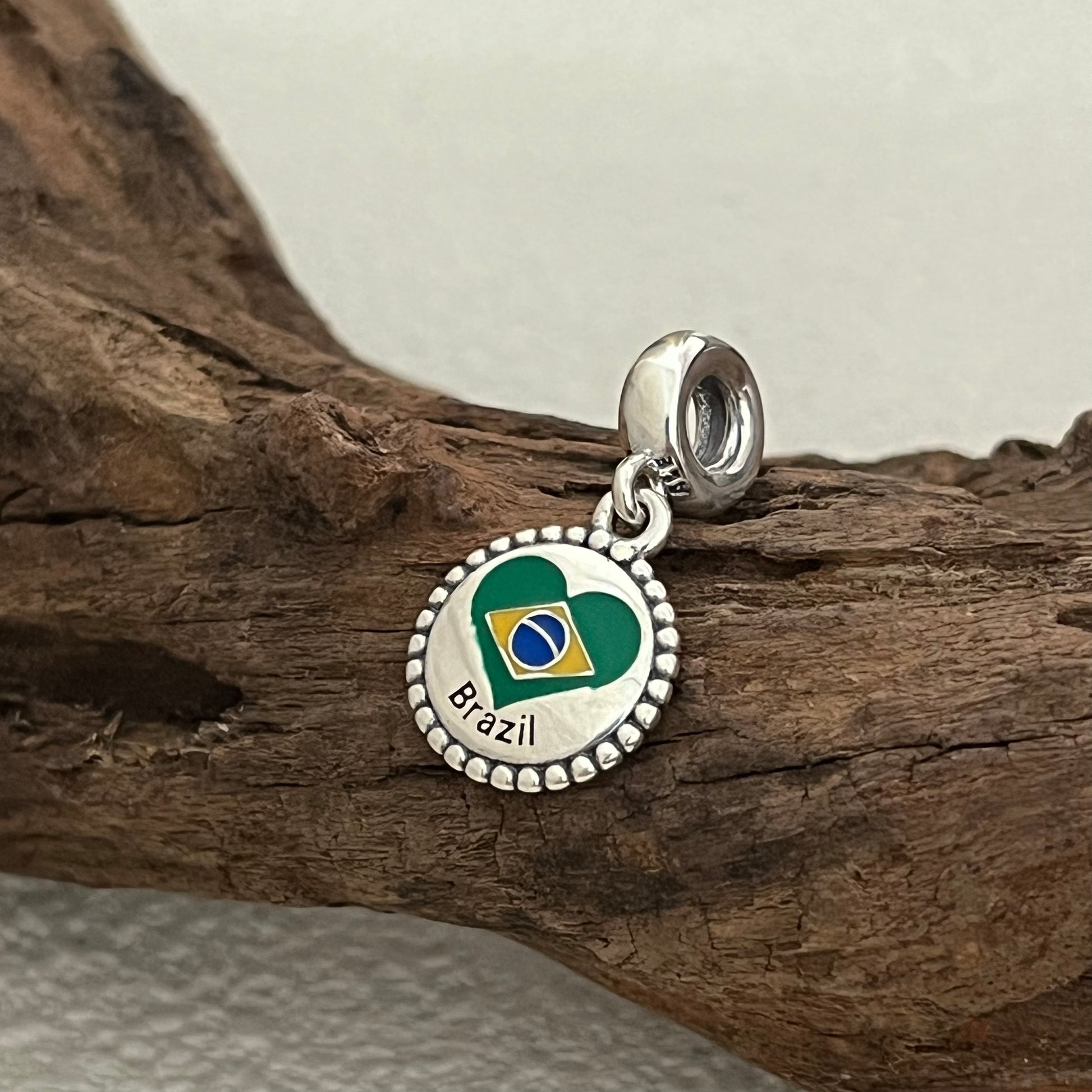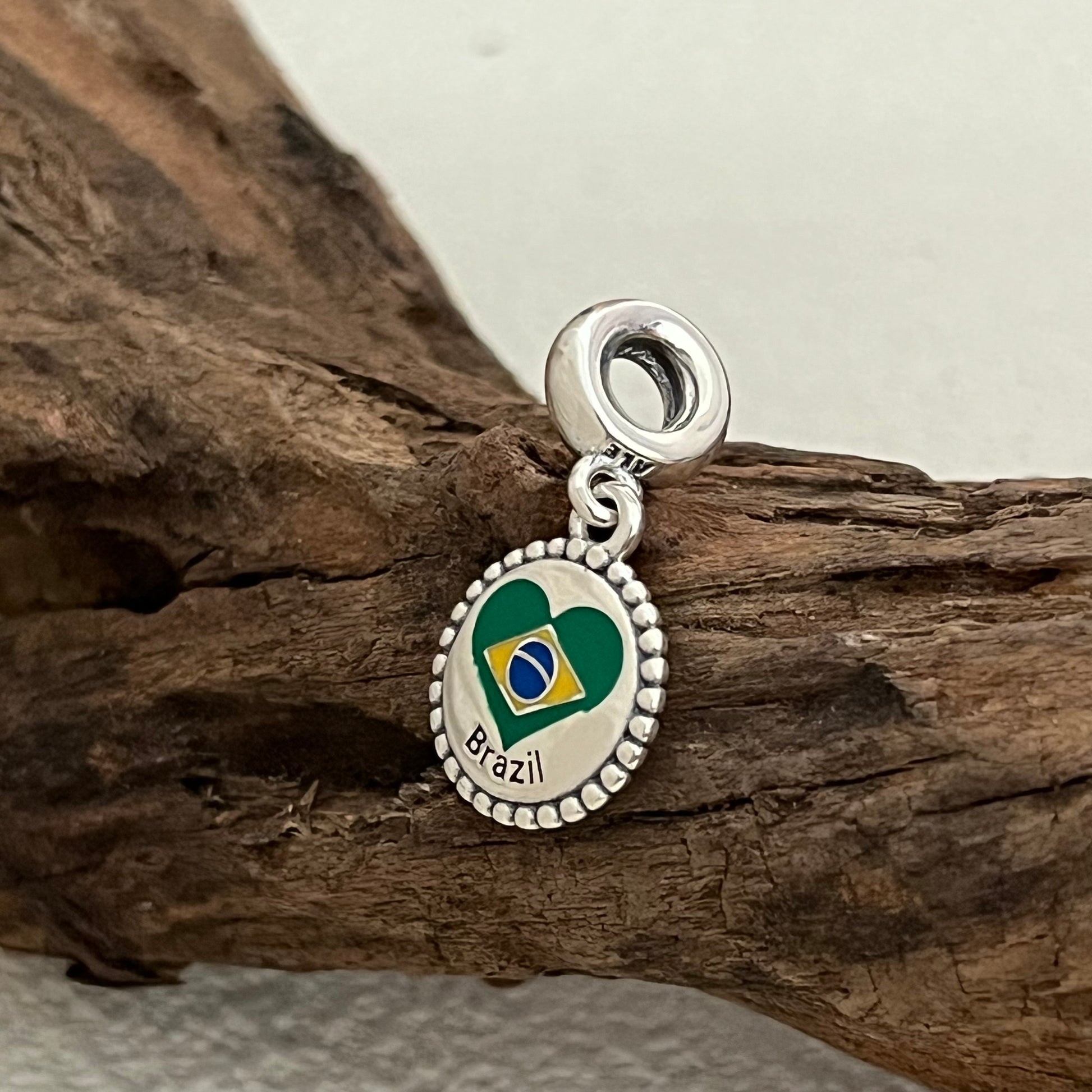 Brazil Heart Flag Exclusive Dangle Charm Pendant for Pandora Bracelet S925 Silver