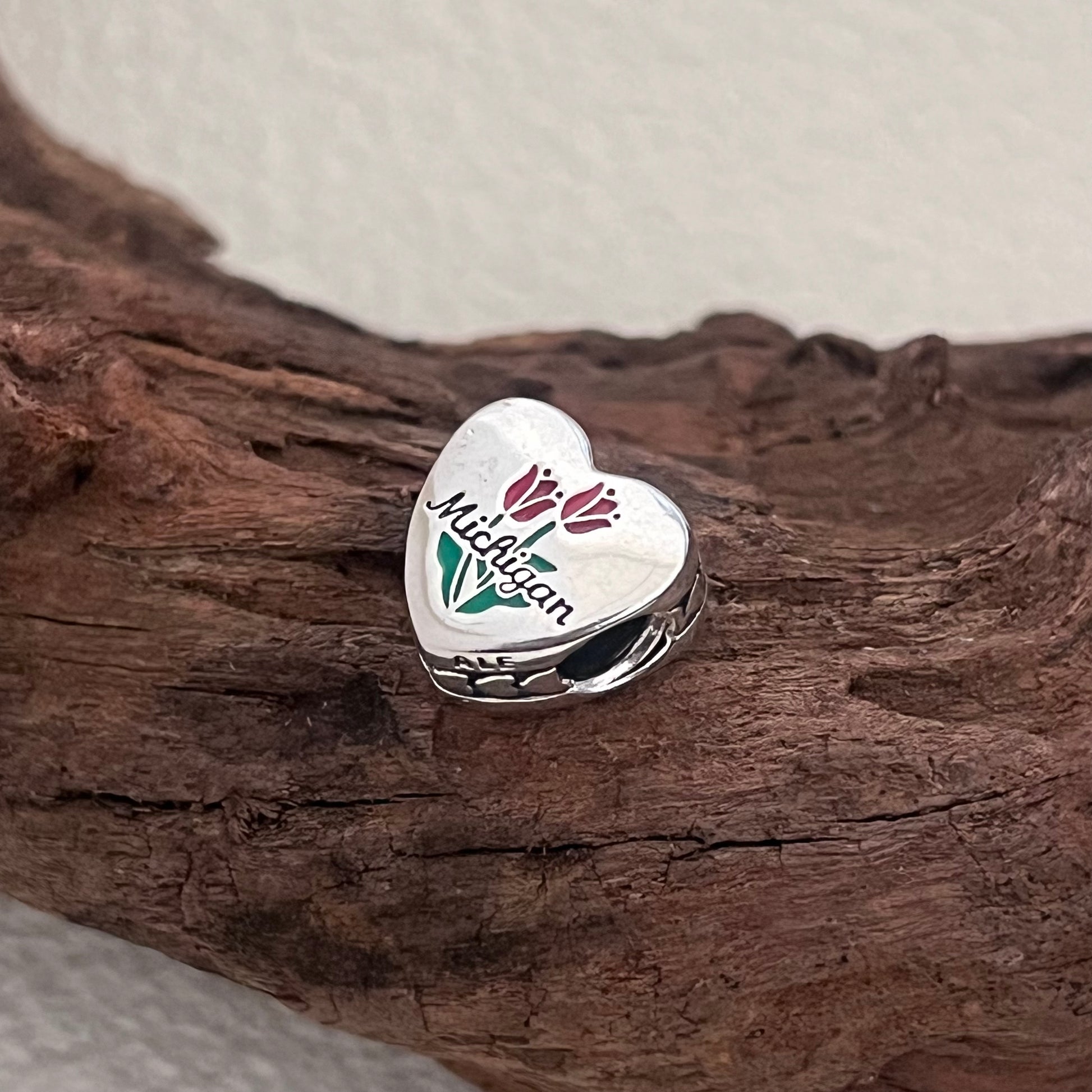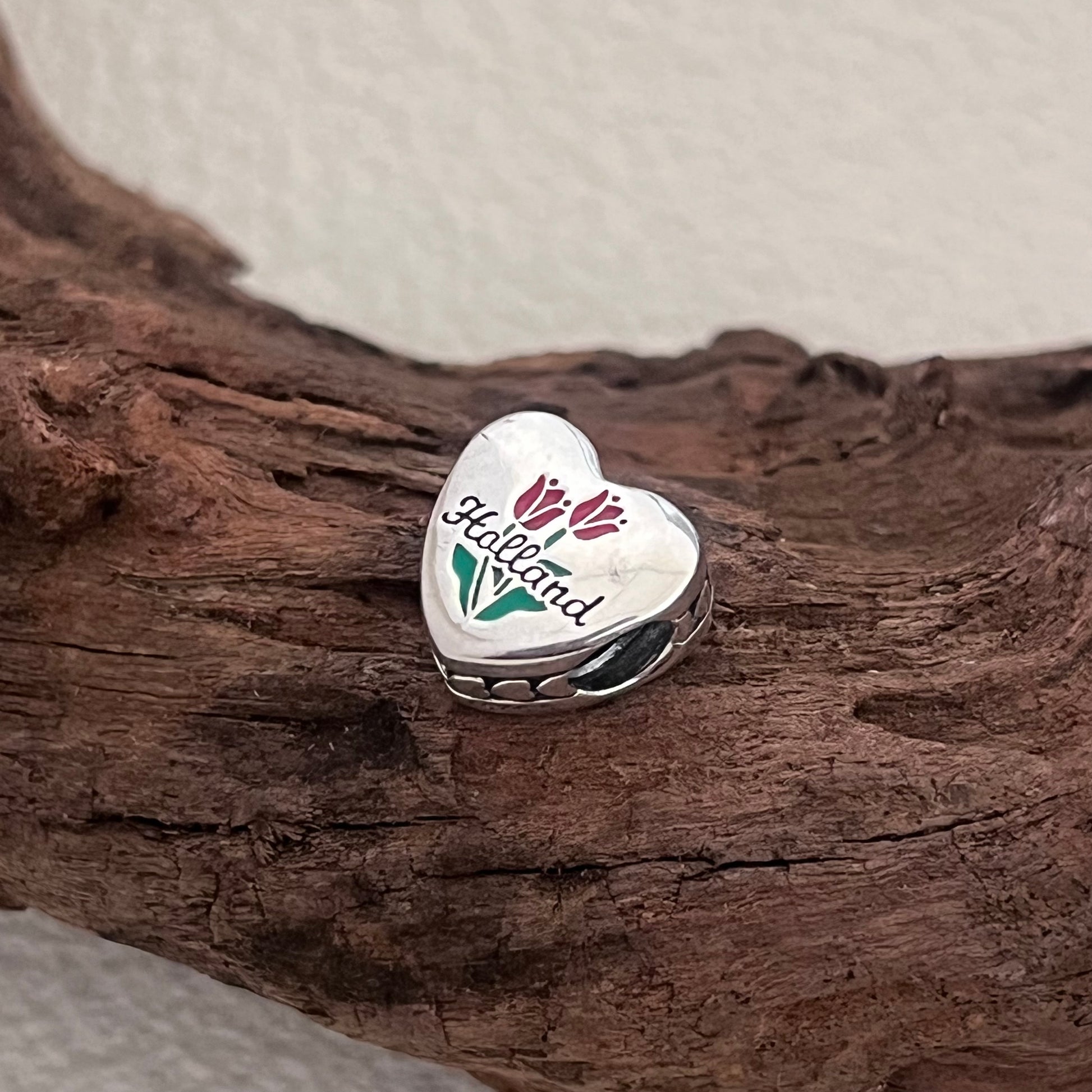 Holland Michigan Keukenhof Flower Exclusive Heart Bead Charm for Pandora Bracelet